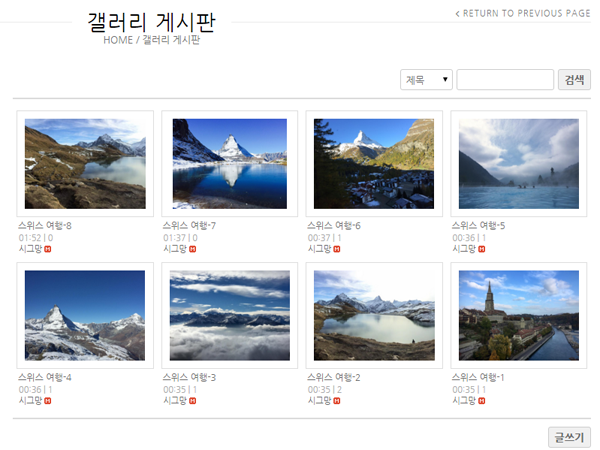 - 갤러리 게시판 숏코드 [mb_board name="board1" list_type="gallery" style=""]