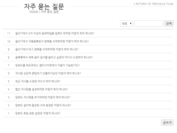 - 자료실 게시판 숏코드 [mb_board name="board1" style=""]