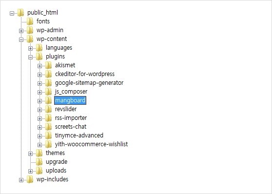 1. 망보드 플러그인 설치파일을 워드프레스 "/wp-content/plugins" 폴더에 업로드 합니다