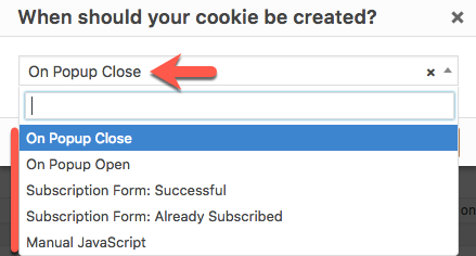 1. On Popup Close -- A cookie is set in the browser when the popup is closed (default);