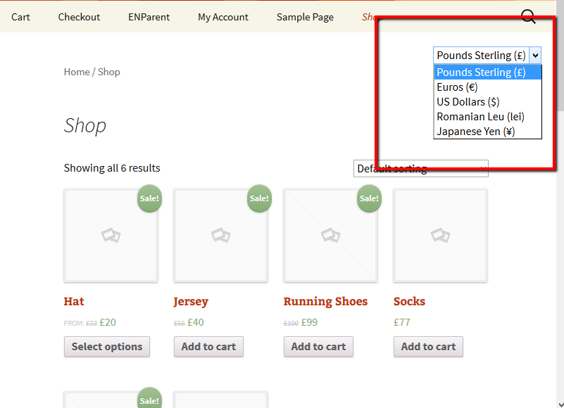 Once you have added the support for multiple currencies, you should display a currency switcher in your site’s theme. You can display the currency switcher with a shortcode or as a hook.