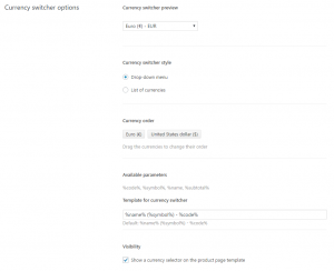 Currency switcher options