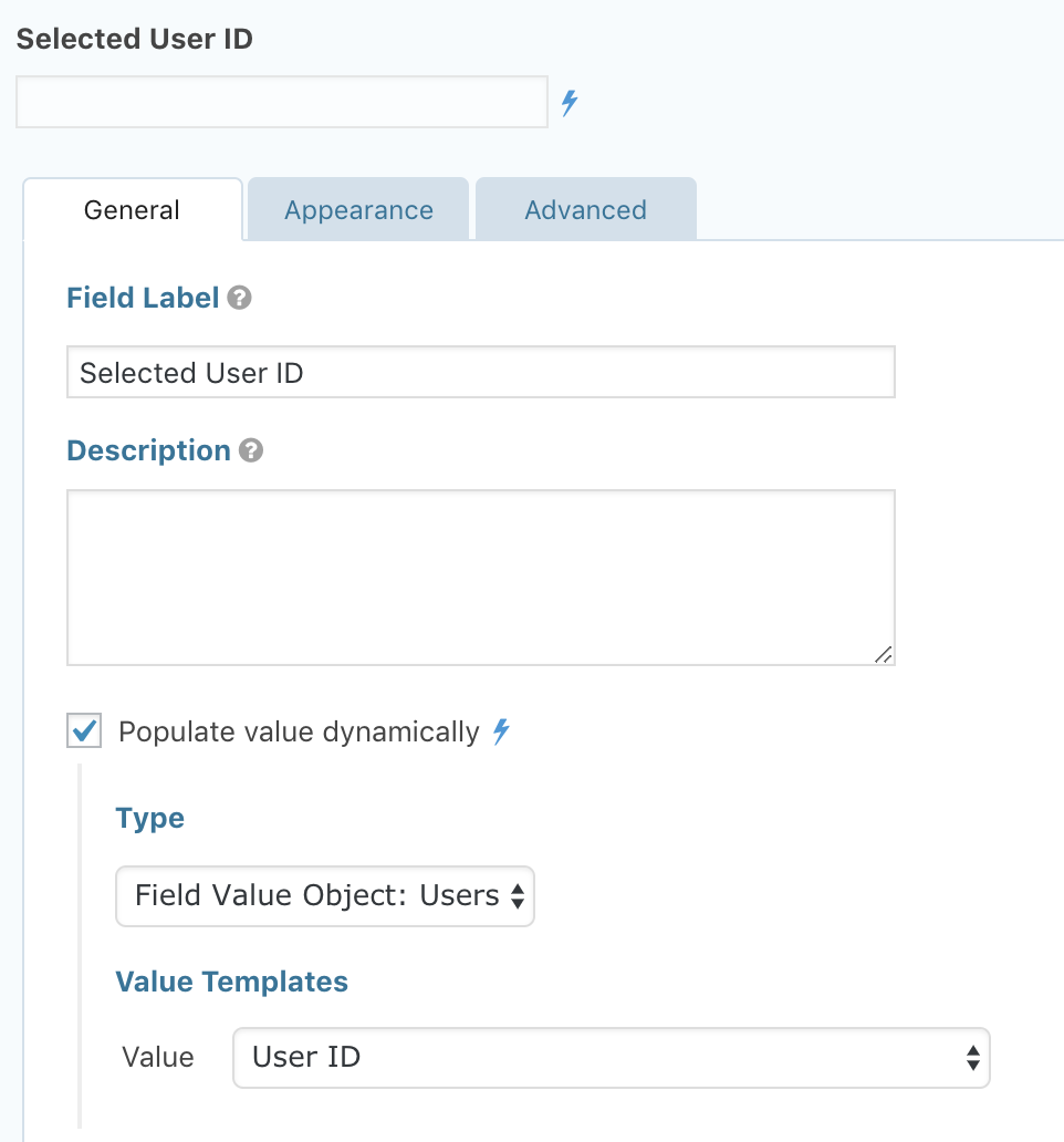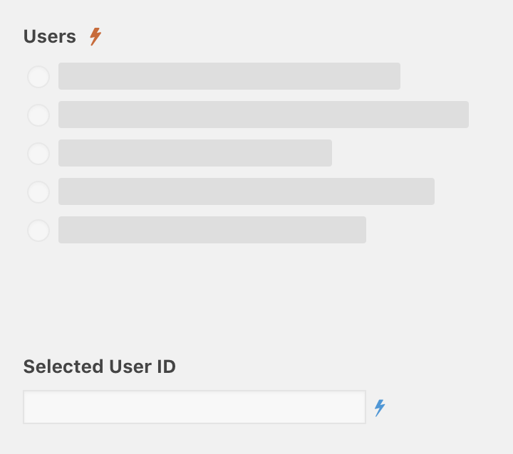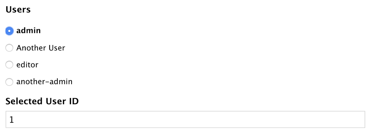 In the example below, we wired up a single text field to display the user ID of the selected user in the radio field above it.