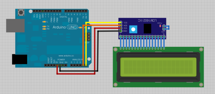 아두이노우노와I2C 통신을구성해봅시다. 회로도는아래와같이연결해줍니다.
