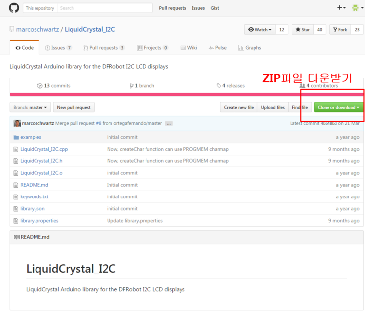 LCD_I2C를사용하기위해서는라이브러리를다운받아야합니다. 다운경로는아래와같습니다.