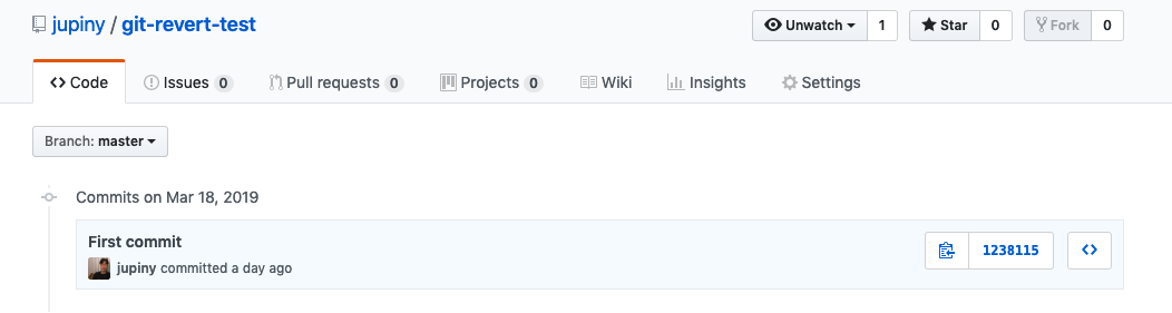 GitHub 페이지를 통해 원격 저장소에서의 커밋이 되돌려졌음을 확인할 수 있다.