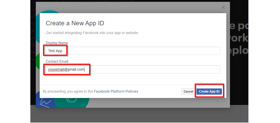 From the popup enter “Display Name” of your new application and“Contact Email”, then click on “Create App Id” Button.This app display name will be shown to end users when they will try to “Login with Facebook” and they are redirected to Facebook website for login permission. So, make sure you give a meaningful name here which can identify your website.