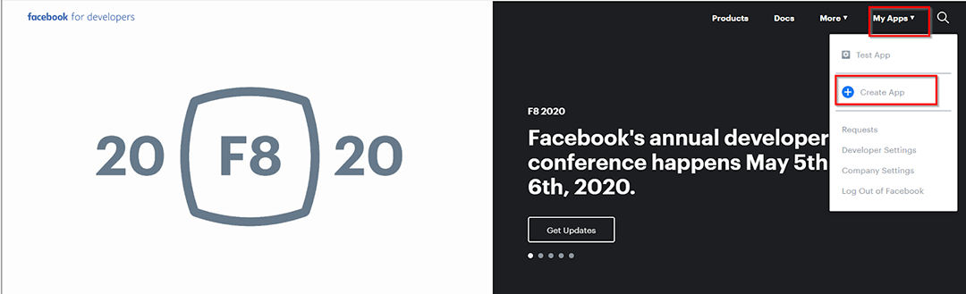 - Login to your Facebook account and navigate to https://developers.facebook.com