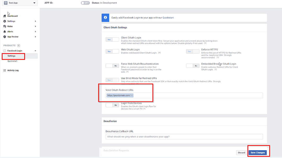 - Enter your website URL in “Valid OAuth redirect URIs”. For example, my website domain is yourdomain.com so I entered https://yourdomain.com