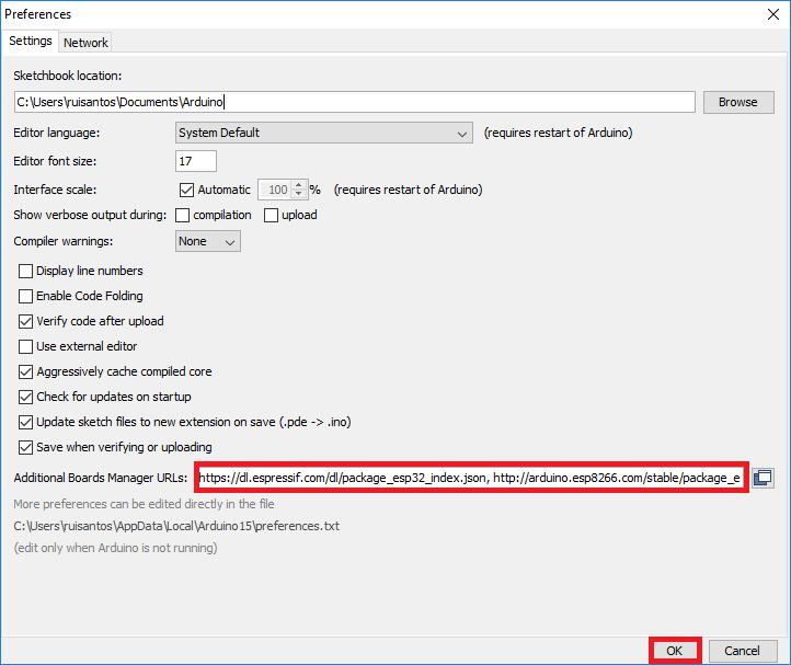 - In your Arduino IDE, go to File> Preferences
