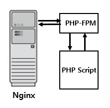 PHP 는 FastCgi 구현채인 php-fpm 을 사용해서 nginx 와 통신합니다.