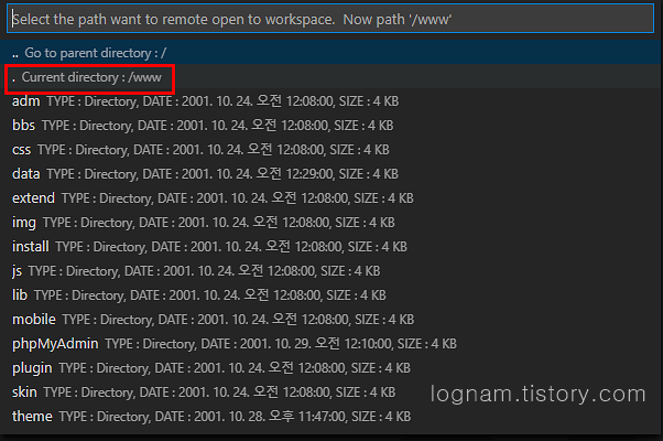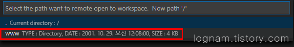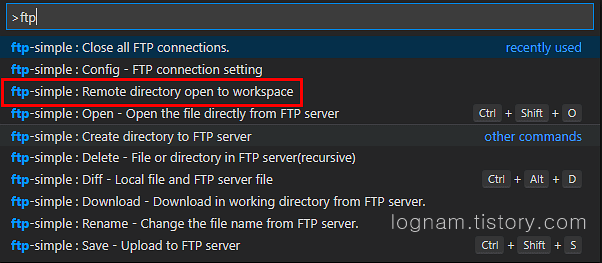 F1키를 눌러 이번에는 ftp-simple : Remote directory open to workspace를 클릭하여 줍니다.