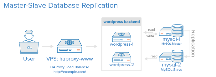 Keep in mind that you do not need to have load balanced application servers (wordpress-1/wordpress-2) to follow this tutorial, and that you can add more slave databases if you want.