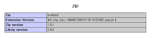 extension="zip.so" 를 추가.