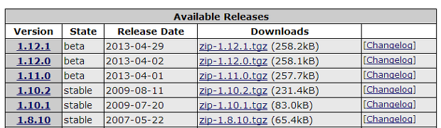 Zip 모듈은 pecl 에서 다운로드 받으면 된다. 여기서 Stable 버전을 다운받는다.