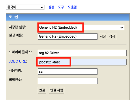 : 경로가 ~/test 이니까 홈에 test.mv.db가 생성된다