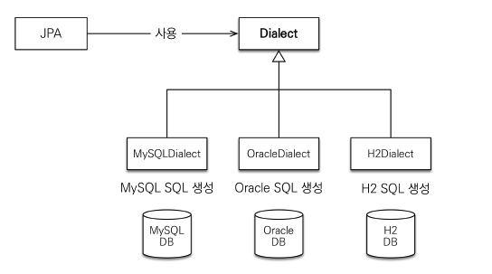- hibernate.dialect 에 사용할 DBDialect를 변경할 수 있음