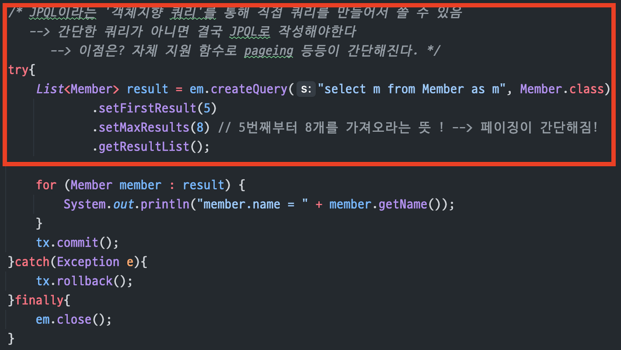 - Table이 아닌 객체를 중심으로 하는 객체 지향 쿼리