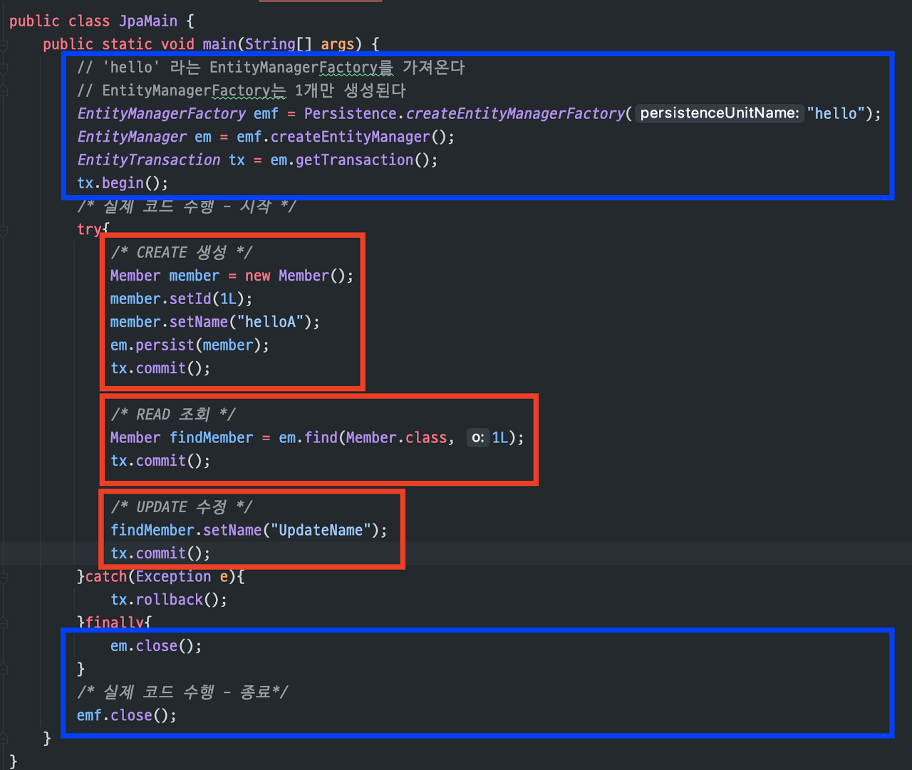 (반드시 main/java/resource/META-INF/persistence.xml)- persistence-unit -> EntityManagerFactory 이름
