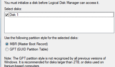 the above shown diagram shows a disk initialization dialog in windows, when a new disk is added to the machine. when you initialize the disk these days you are presented with exactly the same options as shown in the above figure.