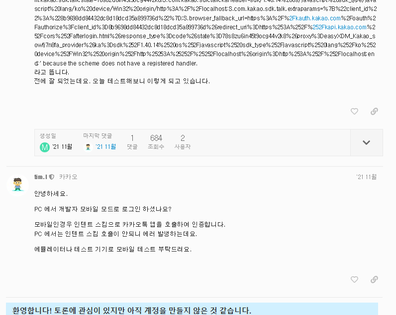 이 부분에 대해서 검색해보니 카카오는 이렇게 답변하고 있다
