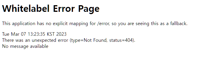 Whitelabel Error Page를 감상할 수 있다.