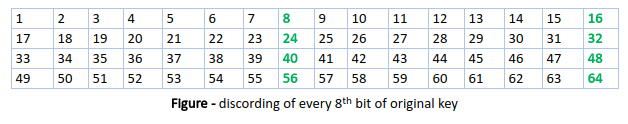 Thus, the discarding of every 8th bit of the key produces a 56-bit key from the original 64-bit key.