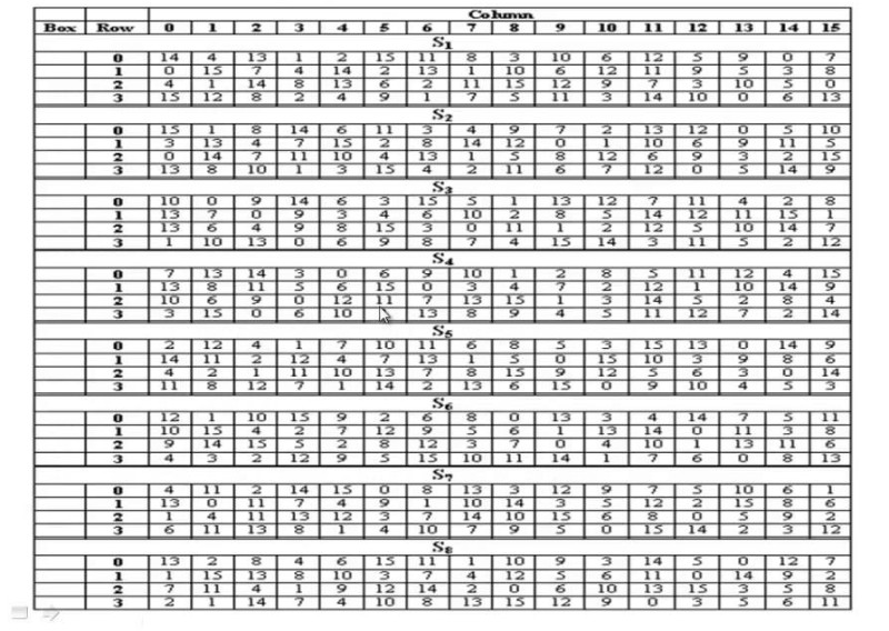 This process results in expansion as well as a permutation of the input bit while creating output. The key transformation process compresses the 56-bit key to 48 bits. Then the expansion permutation process expands the 32-bit RPT to 48-bits. Now the 48-bit key is XOR with 48-bit RPT and the resulting output is given to the next step, which is the S-Box substitution.