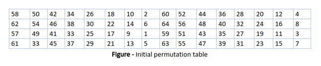 - In the first step, the 64-bit plain text block is handed over to an initial Permutation (IP) function.