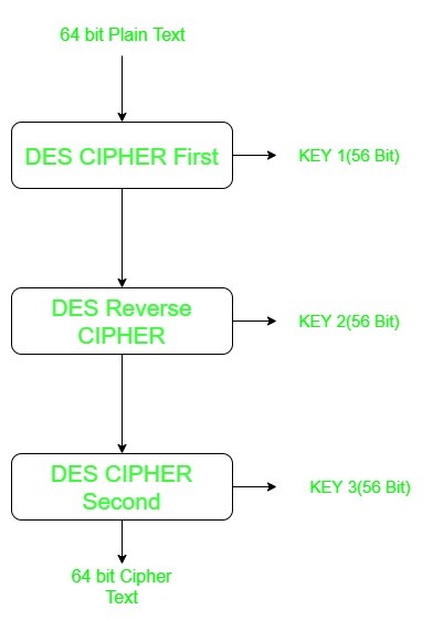 As we know the Data encryption standard (DES) uses 56 bit key to encrypt any plain text which can be easily be cracked by using modern technologies. To prevent this from happening double DES and triple DES were introduced which are much more secured than the original DES because it uses 112 and 168 bit keys respectively. They offer much more security than DES.