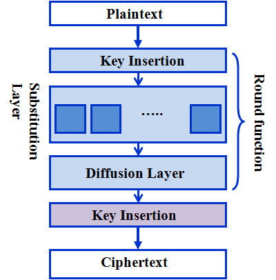 말 그대로 Substitution Layer와 Permuation Layer를 이용하여 Confusion과 Diffusion을 만족시켜주는 암호다.