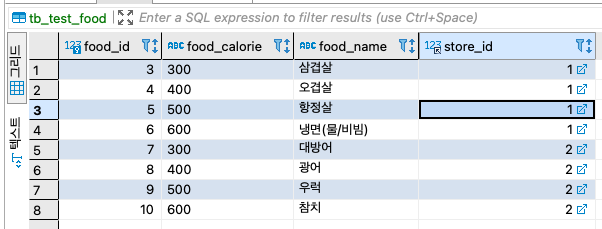 각설하고 코드로 살펴보자. 우선 Food의 값만 조회해보자.