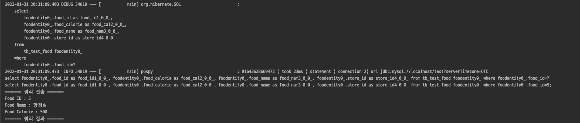 FoodEntity foodEntity = em.find(FoodEntity.class,5L); // food_id 값이 5L인 데이터를 찾는다.