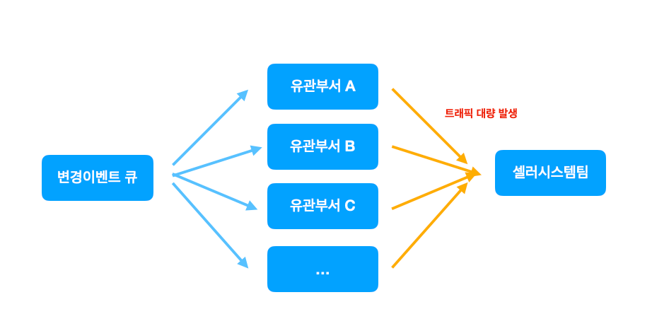 - 변경 사항이 큐를 통해서 유관부서에 전달되고