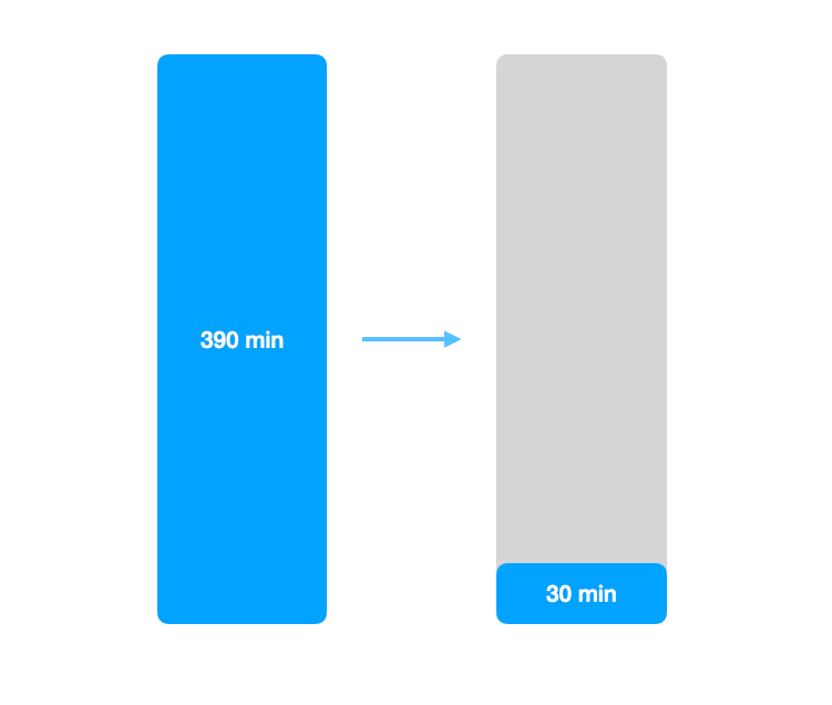 개발 환경에서의 지표를 통해 운영 환경 소요시간을 유추해 보면 6시간 걸리던 것이 1시간 조금 넘게 걸리는 것으로 나오는데요.