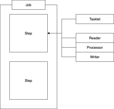 일반적으로 Spring Batch는 대용량 데이터를 다루는 경우가 많기 때문에 Tasklet보다 상대적으로 트랜잭션의 단위를 짧게 하여 처리할 수 있는 ItemReader, ItemProcessor, ItemWriter를 이용한 Chunk 지향 프로세싱을 이용한다.