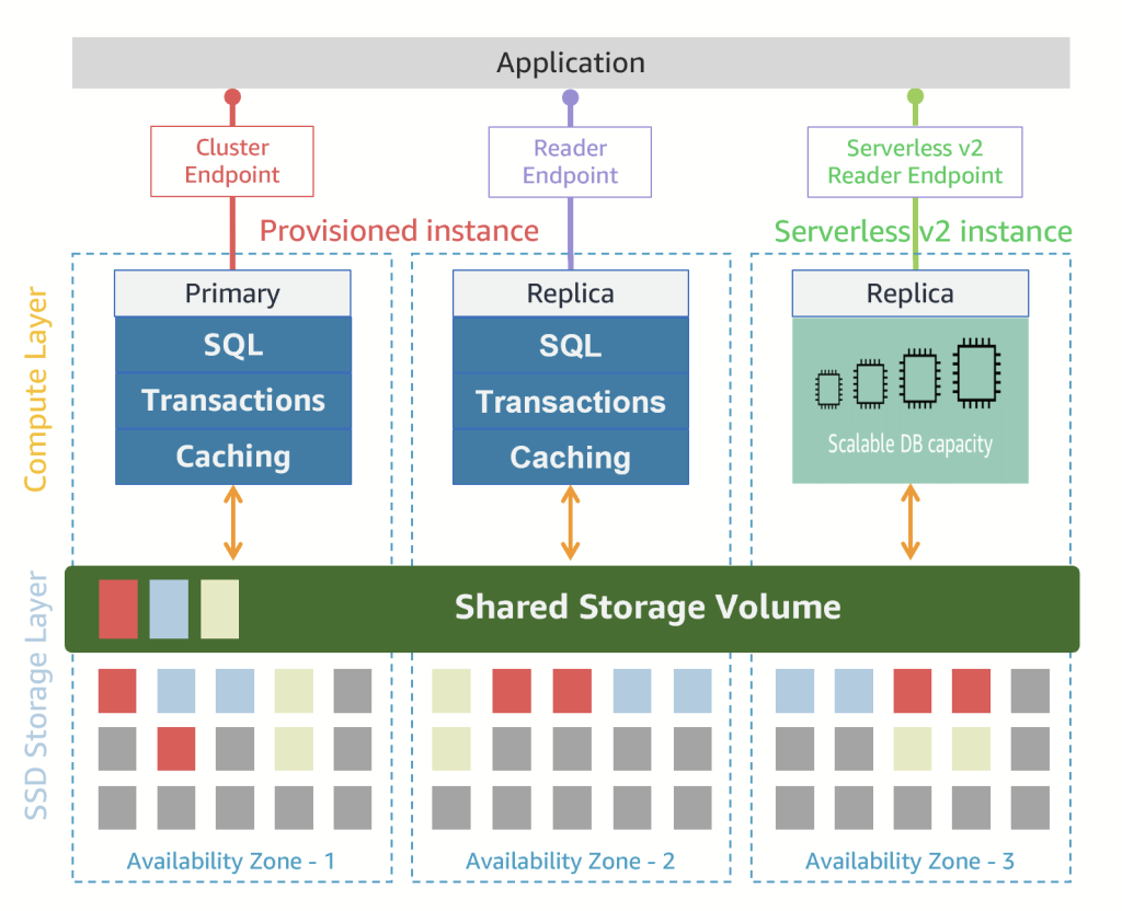 - 임계치를 넘어가는 부하 트래픽을 처리하는 Serverless v2 읽기 전용 인스턴스를 가리키는 엔드포인트