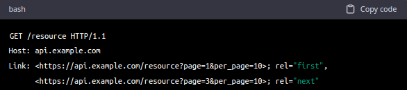 Using HTTP headers: In this approach, the client includes pagination parameters in the headers of the API request. The most common pagination headers are "Link" and "Range", which allow for more flexibility and control over the pagination behavior. The Link header can include URLs for the first, last, previous, and next pages of the result set, while the Range header can specify a range of results to return based on an offset and a limit.
