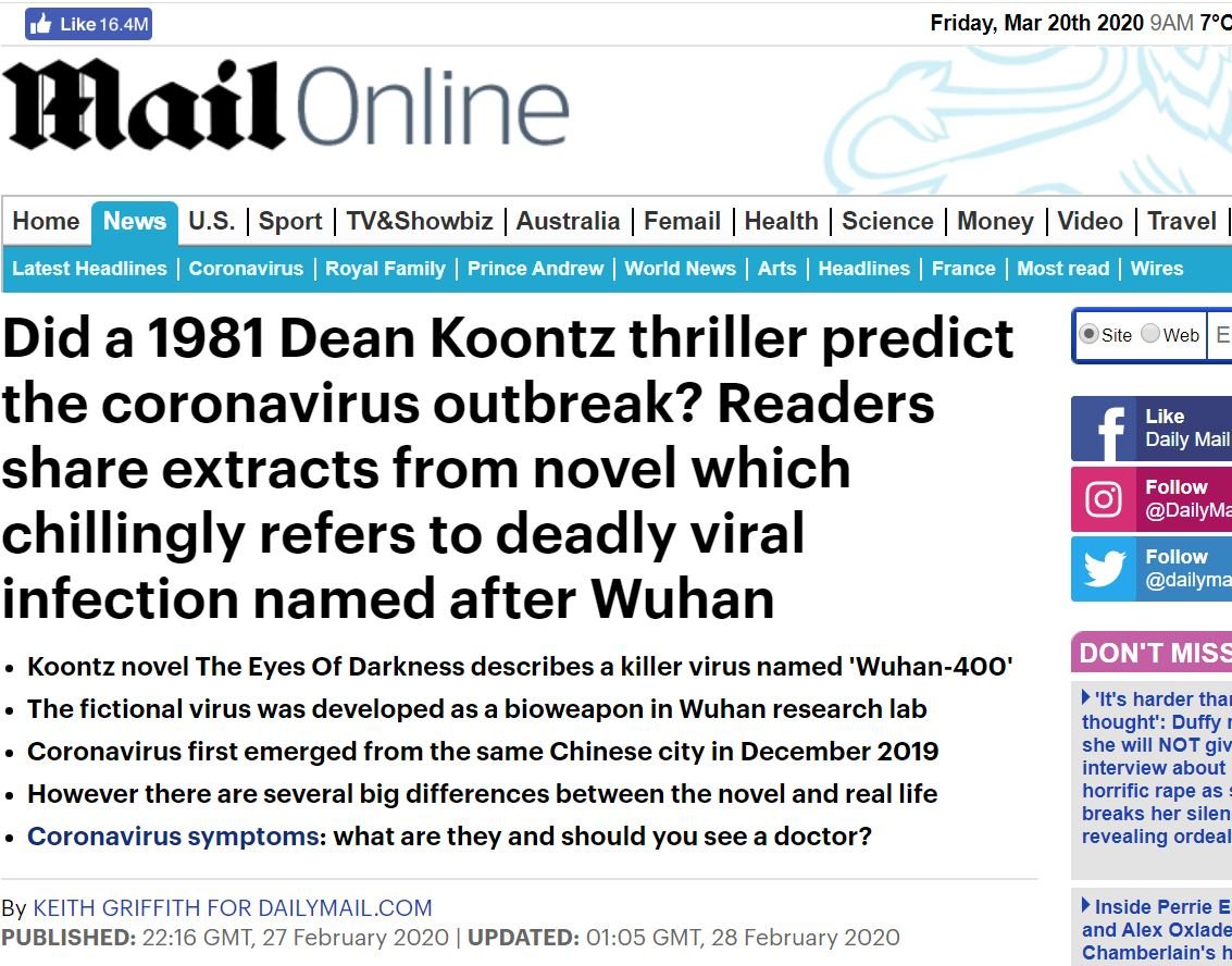 | 1981년 코로나를 예견했다는 소설 그 진실은? (31) | 2020.04.07 |