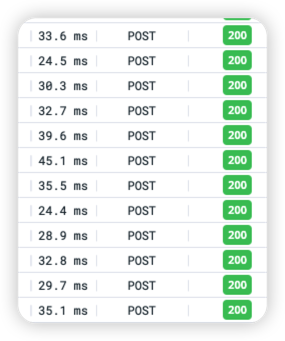 Warm Up 코드를 통해 첫 요청건이라도 아래와 같이 매우 준수한 응답 속도를 낼 수 있었습니다.