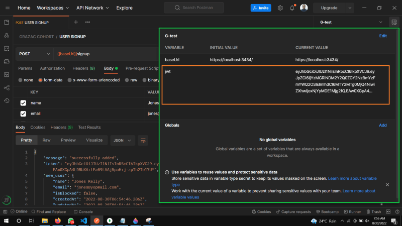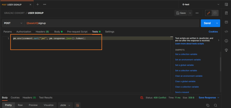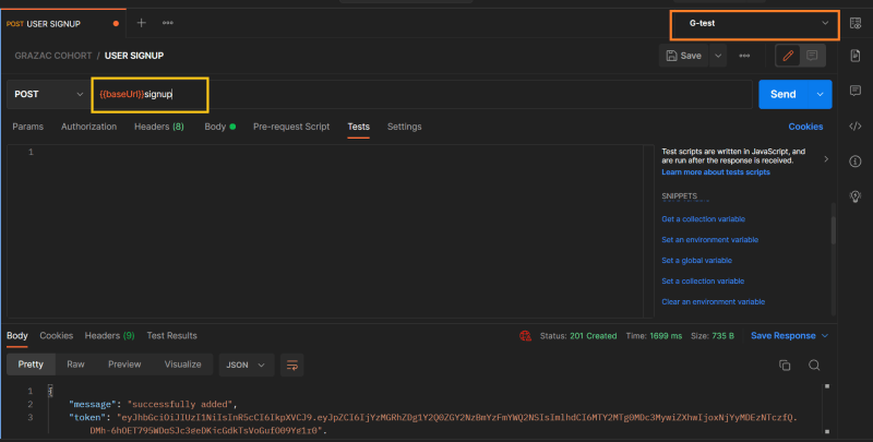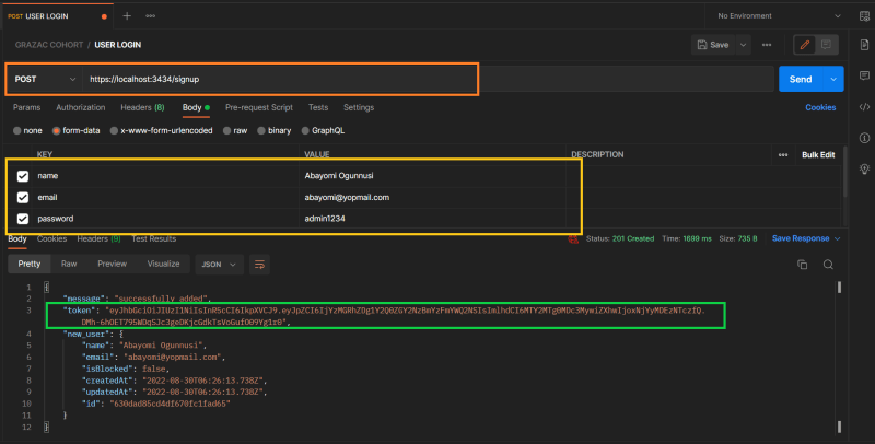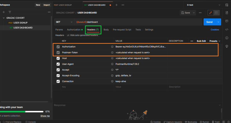 🎯 Following that, we set ourJWTagainst the response token.