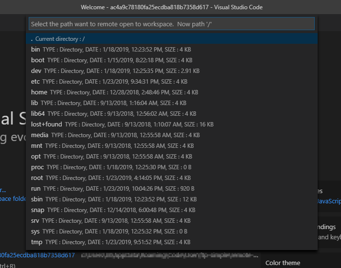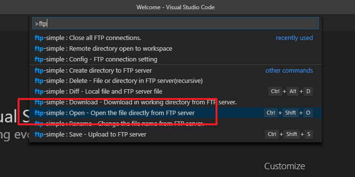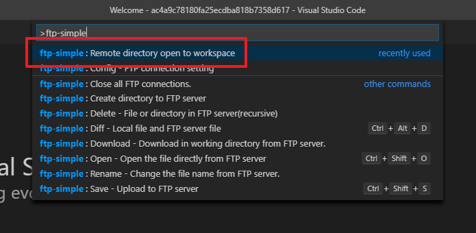 - F1을 누른 후 ftp-simple:Remote directory open to workspace를 선택합니다.