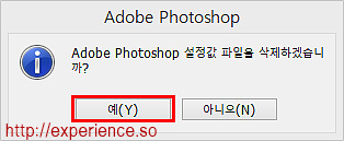 Shift키,Ctrl키,Alt키를 동시에 누르고 포토샵을 실행하면 아래 창이 뜹니다.