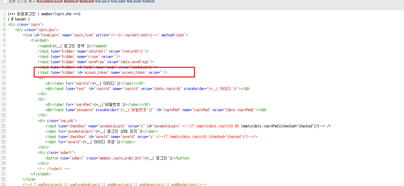 그럼에도 불구하고 문제가 발생했다. 조금 더 살펴보다가 우연치 않게 네이버 간편 로그인과 카카오톡 간편 로그인에 관련된 부분을 고도몰 소스에서 찾아보던 도중에 skin 관련된 부분에서 html 작업과 Js 작업을 한 부분을 찾아내었고
